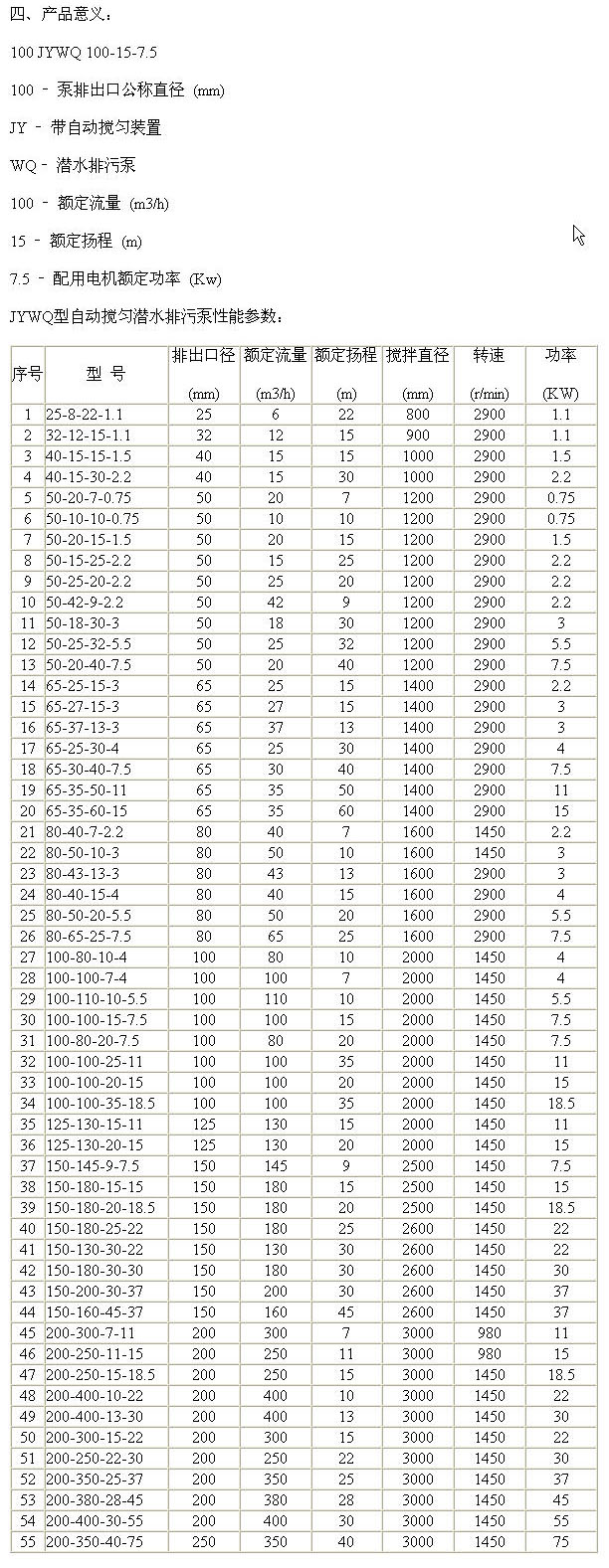 JYWQ型自動攪勻潛水排污泵![]() JYWQ型自動攪勻潛水排污泵 更多信息一、產品概述:
