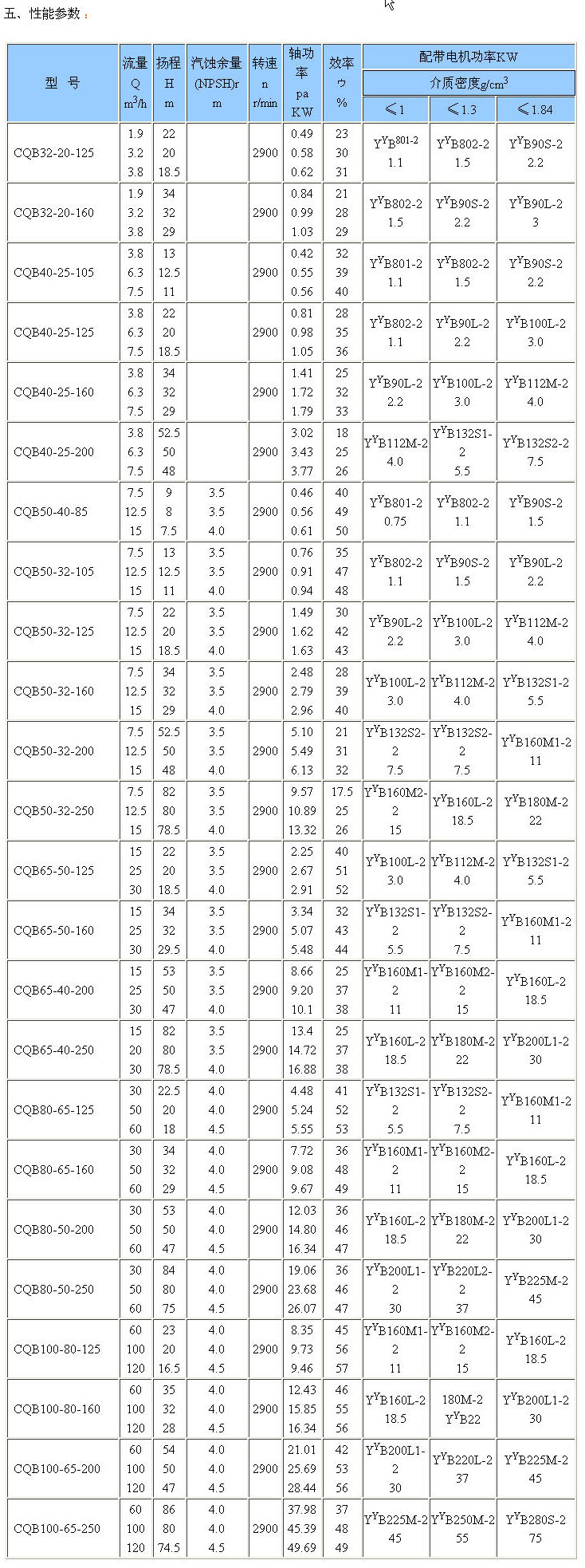 CQB型磁力泵一、產品概述 CQB磁力驅動離心泵(簡稱磁力泵),通常由電動機,磁力偶合器和耐腐蝕離心泵組成。其主要特點是利用磁力偶合器傳遞動力,完全無泄漏,當電動機帶動磁力偶合器的外磁鋼旋轉時,磁力線穿過問隙和隔離套,作用于內磁鋼上,使泵轉子與電動機同步旋轉,無機械接觸地傳遞扭矩。在泵軸的動力輸入端,由于液體被封閉在靜止的隔離套內,沒有動密封因而完全無泄漏。 二、主要特點 CQB系列磁力泵是磁力泵全國聯合設計組開發的 完全無泄漏耐腐蝕泵,其技術經濟指標與國外同類產品八十年代末的水平相當。 CQB系列磁力泵型式及基本參數符合JB/T 7742—1995《小型磁力驅動離心泵型式與基本參數》標準和《小型磁力驅動離心泵三個標準的補充規定》。 三、產品用途 CQB系列磁力泵適用于石油、化工、制藥、冶煉、電鍍、環保、食品、影視洗印、水處理、國防等行業,是輸送易燃、易爆、揮發、有毒、稀有貴重液體和各種腐蝕性液體的理想設備。適用于輸送吸入壓力不大于0.2MPa,最大工作壓力1.6MPa,溫度不超過 四、型號意義:
