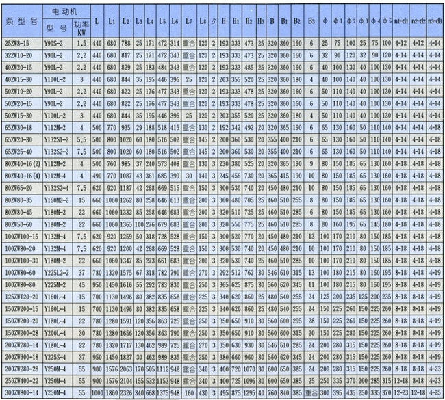 導航:回首頁---當前位置---水泵產品內容頁補充頁 >> ZW型自吸式無堵塞排污泵外形安裝尺寸