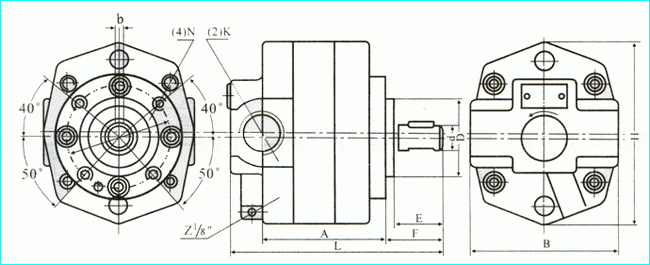BBBBG型內嚙合擺線齒輪泵外形尺寸圖: