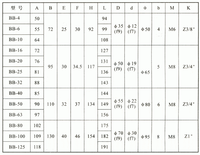 BB、BBG型內嚙合擺線齒輪泵|外形尺寸