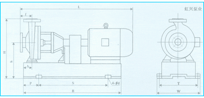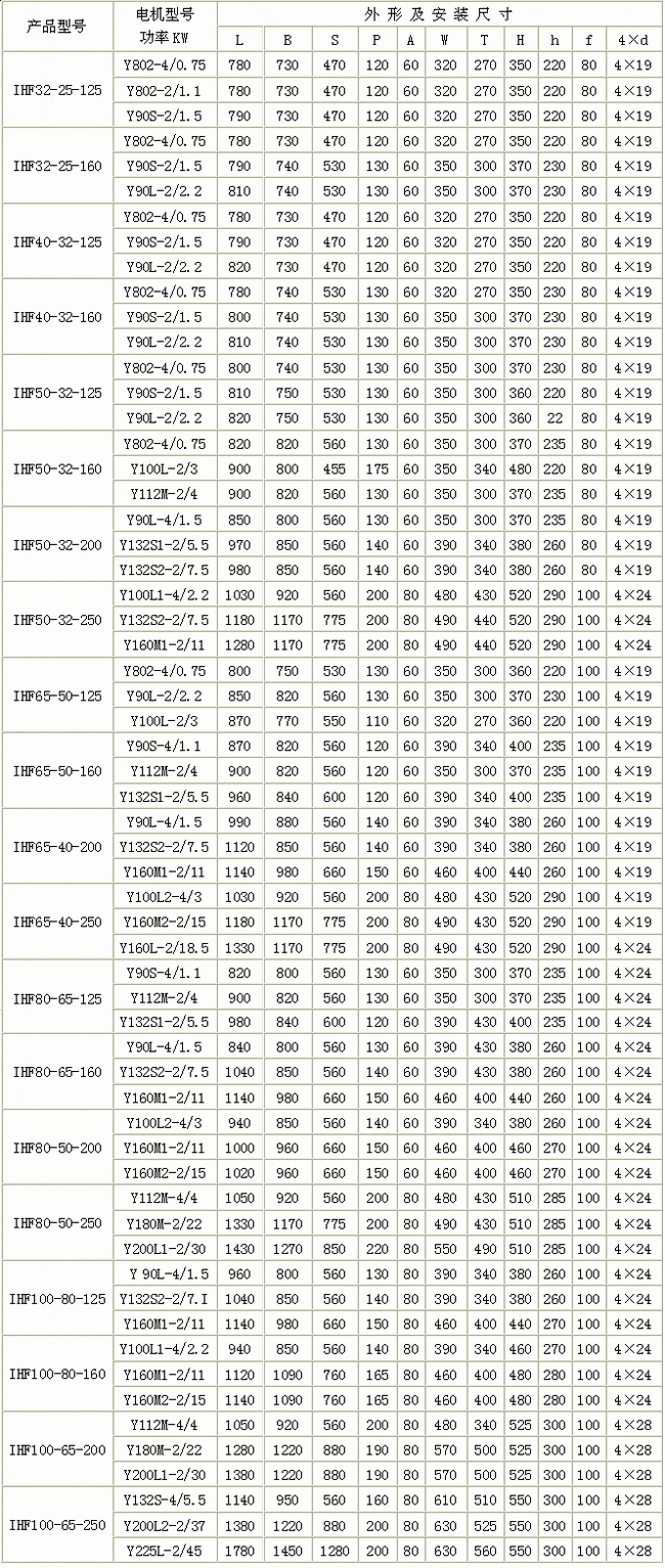 IHF型氟塑料合金離心泵外形尺寸圖: