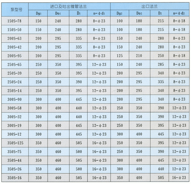 S、SH型單級雙吸泵|法蘭安裝尺寸