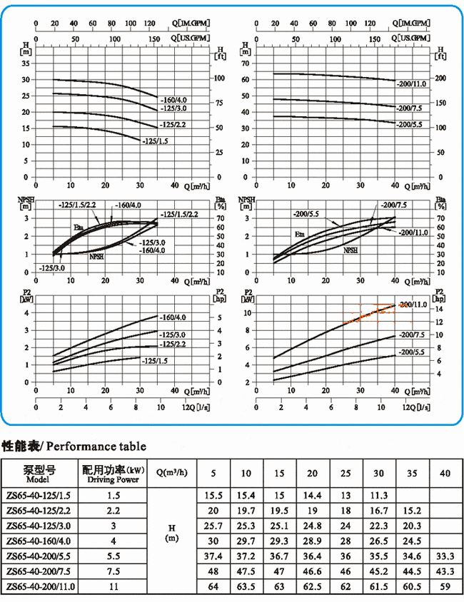 ![]() ZS型不銹鋼臥式單級離心泵曲線圖65-50-***