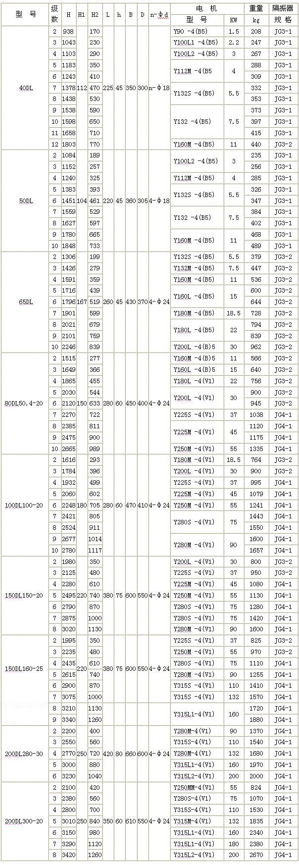 導航:回首頁---當前位置---水泵產品內容頁補充頁 >> DL型立式多級離心泵外形安裝尺寸