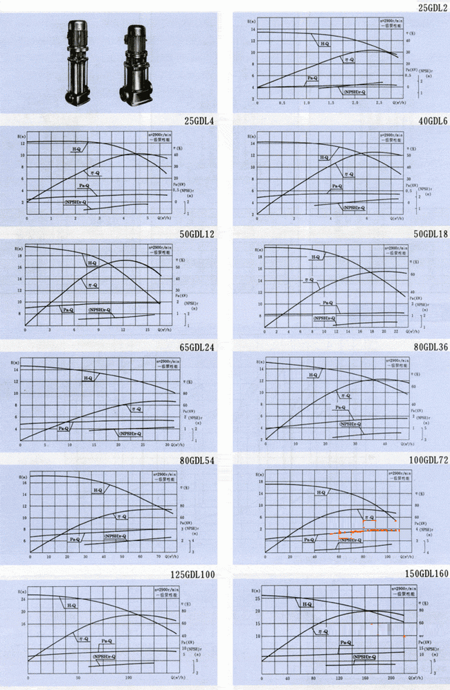 導航:回首頁---當前位置---水泵產品內容頁補充頁 >> GDL型立式多級管道離心泵曲線圖|CAD圖紙