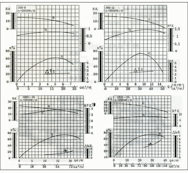 D、DG型臥式多級離心泵曲線圖