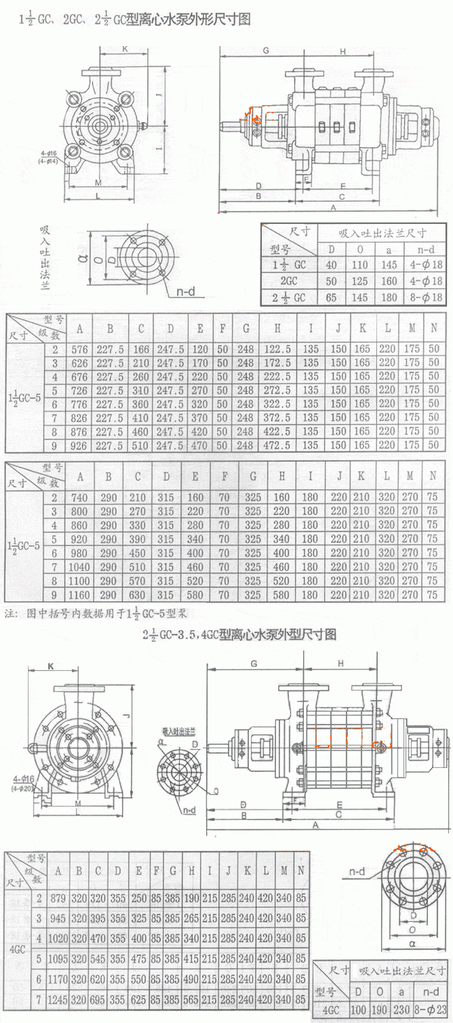 導航:回首頁---當前位置---水泵產品內容頁補充頁 >> GC型臥式多級離心泵外形尺寸