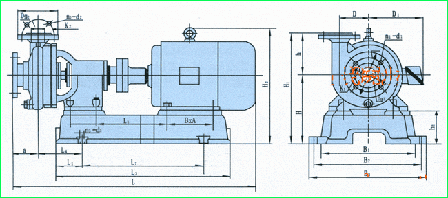FB、AFB型耐腐蝕離心泵外形安裝尺寸圖: