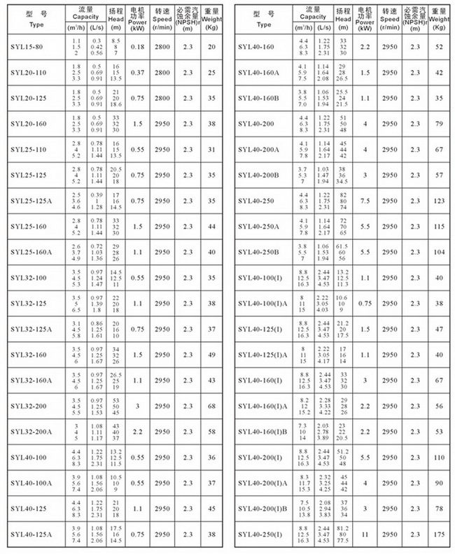 導航:回首頁---當前位置---水泵產品內容頁補充頁 >> SYL型單級單吸立式離心泵參數四