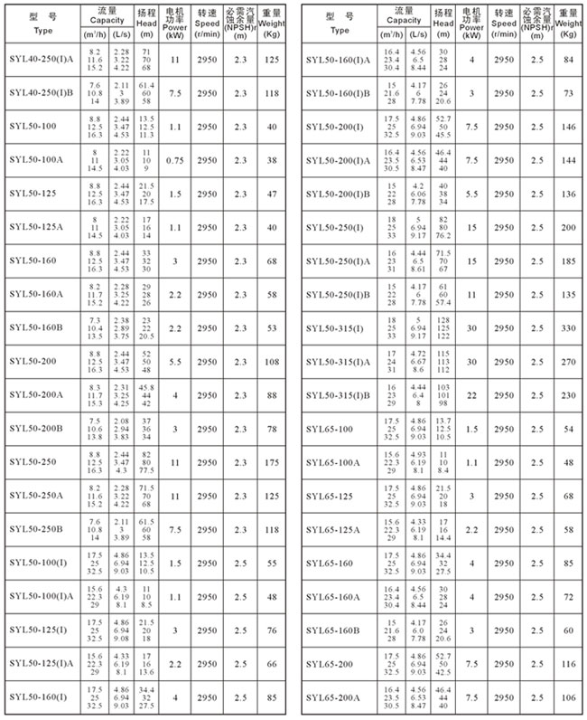 導航:回首頁---當前位置---水泵產品內容頁補充頁 >> SYL型單級單吸立式離心泵參數五