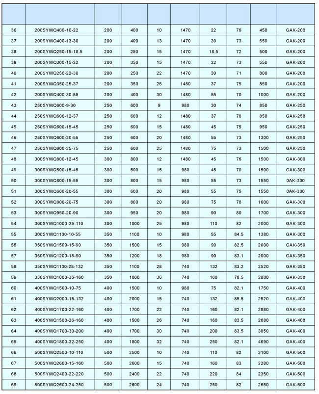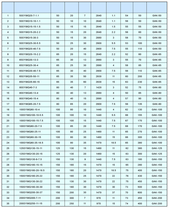 導航:回首頁---當前位置---水泵產品內容頁補充頁 >> SYWQ型沖污式自動攪勻排污泵參數二