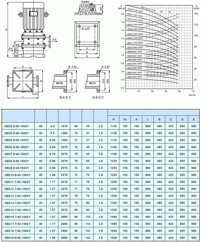 導航:回首頁---當前位置---水泵產品內容頁補充頁 >> XBD立式雙級(多級)消防泵性能參數(5)