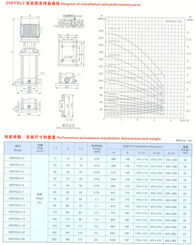 導航:回首頁---當前位置---水泵產品內容頁補充頁 >> SYDL不銹鋼多級離心泵參數三