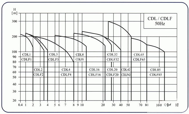 CDLF型輕型不銹鋼多級泵|曲線圖譜: