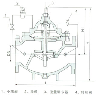 產品概述 400X減壓閥是種利用介質自身能量來調節與控制管路壓力的智能閥門,用于生活給水、消防給水及其他工業給水系統,通過調節減壓導閥,即可調節主閥的出口壓力。出口壓力不因進口的變化而變化, 地將出口壓力維持在設定值上,并可根據需要調節設定值以達到減壓目的。該閥減壓精確,性能穩定、 、安裝調節方便,使用壽命長。 典型安裝示意圖